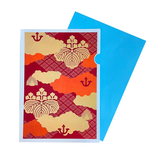 豊臣秀長、豊臣秀吉と関わりの深い家紋や兜の前立てをデザインに取り入れた和紙ファイルです。 武将の力強さを意識した配色の2種類と、知性や聡明さをイメージしたパステル調の2種類をご用意しました。 素材に柔らかな風合いの和紙(雲竜)を使用しております。 豊臣秀長や豊臣秀吉ゆかりの地を巡る旅のアイテムとしてぴったりの商品です。 同じ柄の御朱印帳や御朱印帳袋とそろえてみるのもおすすめです。 サイズ:縦310mm 横220mm 素材:和紙(雲竜) ※お使いの機器により、色の見え方が実際の商品と異なる場合がございます。ご了承の上、お買い求めください。 ※長時間直射日光に当てますと、和紙が退色することがあります。 ※使用時の摩擦などにより、色落ちや色移りすることがあります。 ※防水加工はしておりませんので、水濡れによる変形や色落ちにご注意ください。 ※火のそばで使用しないでください。