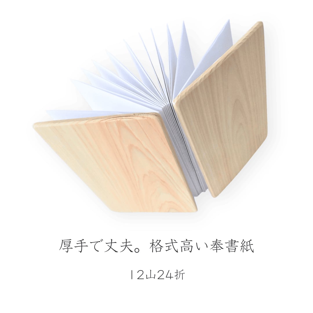 伝統的な「蛇腹(じゃばら)式」を採用し、手に馴染む質感と、開くたびに広がる檜のやさしい香りが、参拝のひとときをより豊かな時間へと演出します。