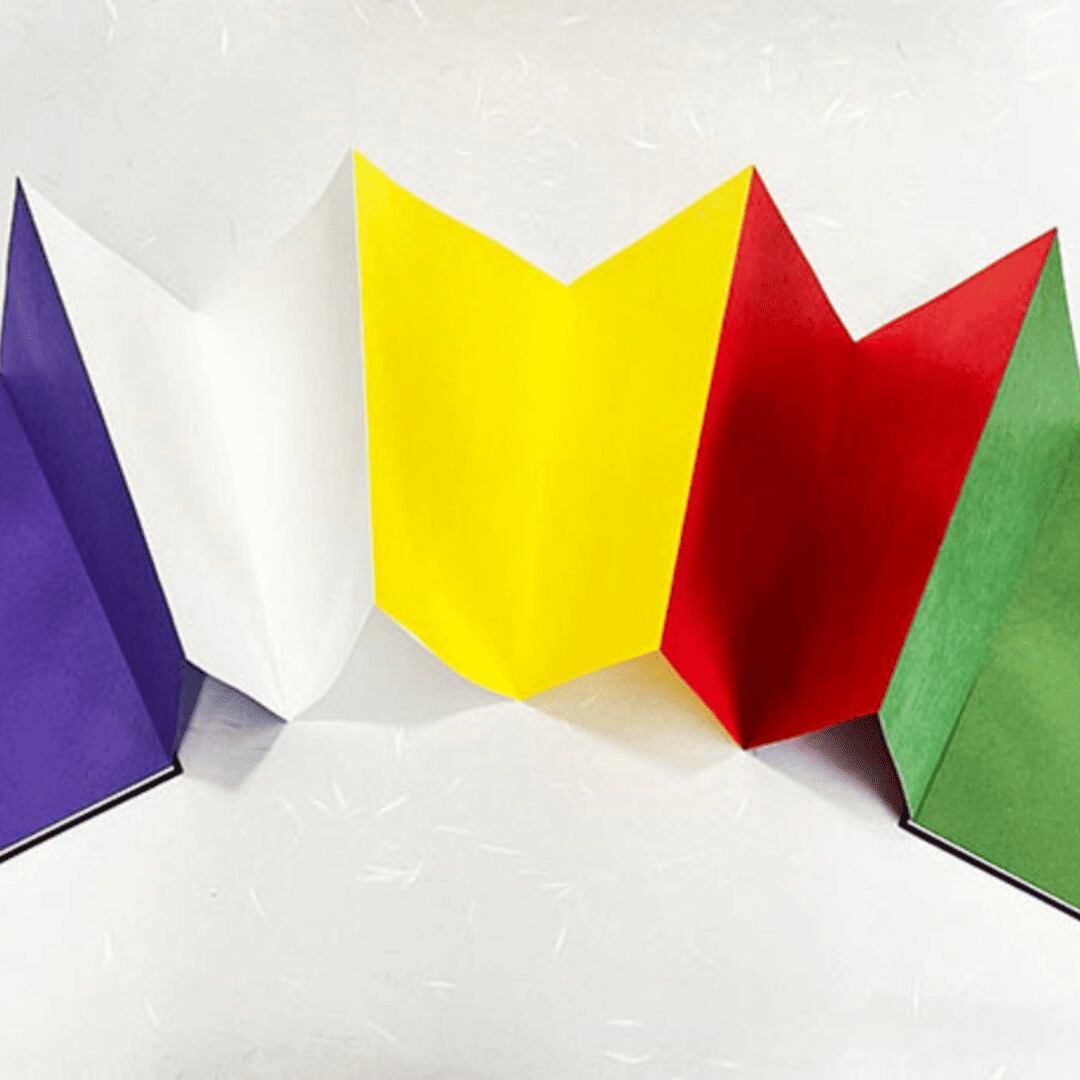 中紙には、色とりのこを5色使用しています。5色の意味は、万物の成り立ちとされる五行を表した色となっています。世の中の流れがうまく循環し、元気に躍進していけるよう 思いを込めて製作いたしました。